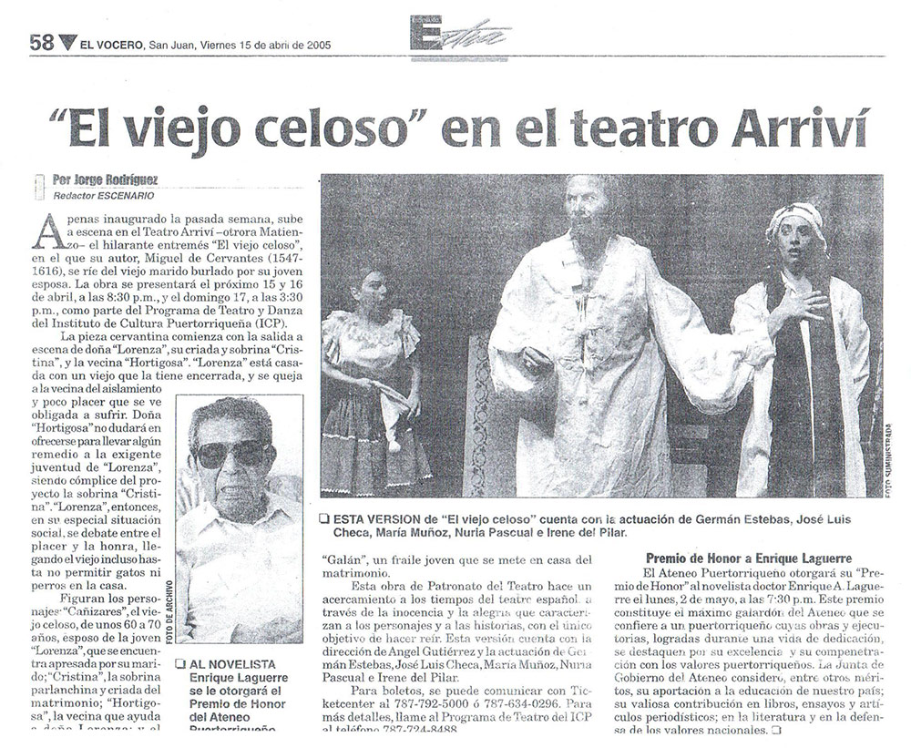 Intercambio Cultural con el ICP teatro de Cámara de Madrid, Director Ángel Gutiérrez, con la obra «El viejo celoso», invitados al Festival Internacional de Teatro Puertorriqueño, UPR, Interamericana.