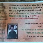 Como Intercambio Cultural, se lleva a cabo el Conversatorio con el Gerente de la Academia de las Artes de España y Director de teatro Mariano de Paco Serrano junto a Ana Ballesteros, en Festivales, Universidades, etc., y recepción con el Cónsul de España en el Consulado. Reunión con el prestigioso Director y Maestro de teatro clásico de la UPR y del Teatro Rodante de Puerto Rico, Deán Zayas.