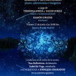Actividad «Universo de música y astronomía. Piano, astronomía e imágenes» a cargo de Teresina Jordà y David Jordà, autores e intérpretes al piano, y Ramón Drudis, astrónomo, en el Espacio Ronda (Madrid). Esta disertación formaba parte del XVI Seminari de Postgrau Cervera i Jordà.