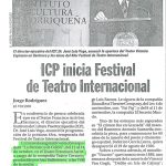 Intercambio Cultural con el ICP teatro Corsario de Valladolid, que por segunda vez participan, esta vez abriendo el Festival Internacional de Teatro con «La barraca de Colón» de Fernando Urdiales, Director de la Compañía, llevada a cabo en Universidades de la Interamericana, UPR y Escuelas.